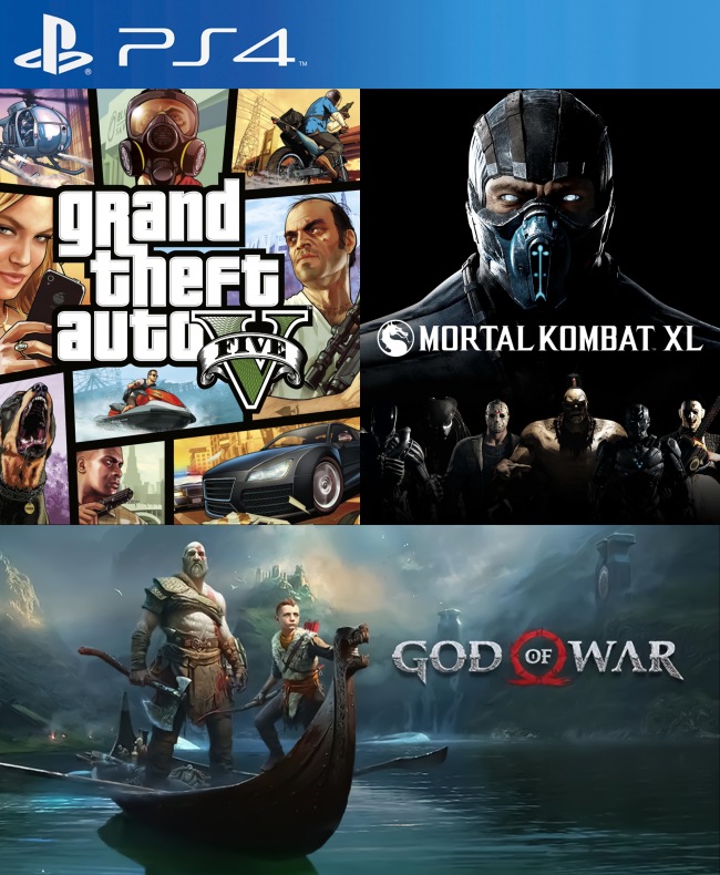 GRAND THEFT AUTO (GTA) V : Ingles - Subtitulo Español God of war : Español Mortal Kombatl XL : Ingles - Subtitulo Español Peso de Los Juegos : 119 GB Requerido en Consola : 200 GB Libres. Instalación : 1 consola